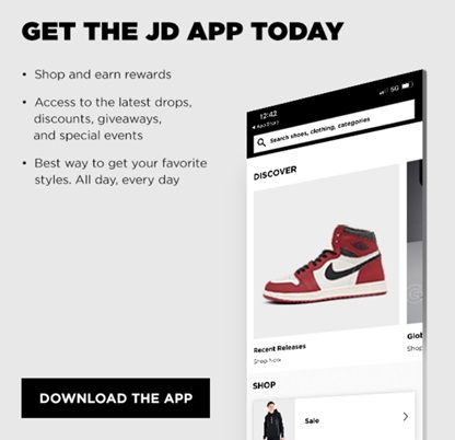 A meglévő ügyfeleknek még több okuk van az örömre, mert különböző JDSports Kuponok közül választhatnak. Akár 75%-os kedvezményt is kaphat az akciós termékekre, vagy 50%-os kedvezményt kaphat az egész oldalra vonatkozóan. Néha, akkor is kap ingyenes szállítás a megrendelések egy bizonyos érték felett, vagy kaphat akár 50% le a kiválasztott tételek.