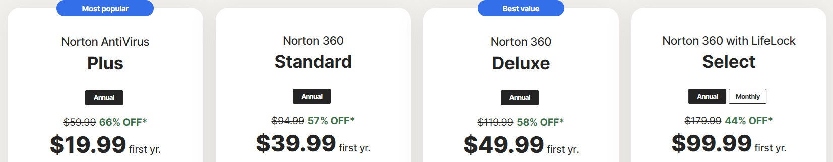 A meglévő ügyfelek különböző Norton Kuponok közül választhatnak, amelyek célja, hogy a legjobb kedvezményeket biztosítsák számukra. Például több mint 80%-os kedvezményt kaphatnak az éves előfizetési tervhez, vagy akár 60%-os kedvezményt is megtakaríthatnak a kiválasztott termékeken.